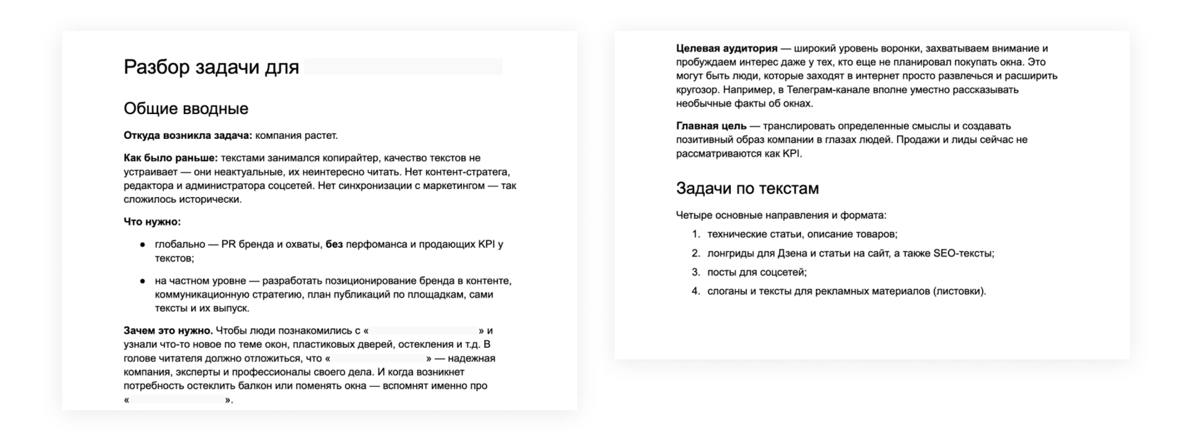 2. Решать трудности голосомЕсли непонятно, как отвечать на какие-то пункты, или это кажется слишком долгим — запишите аудиосообщение, договоритесь о созвоне. В нашем агентстве это приветствуется. Полученный материал обязательно добавляем в бриф, чтобы вы проверили информацию, а все участники проекта имели к ней доступ. Более простой вариант — заполнить пункт частично и прислать на проверку. Тогда мы подскажем, как развернуть ответы.
