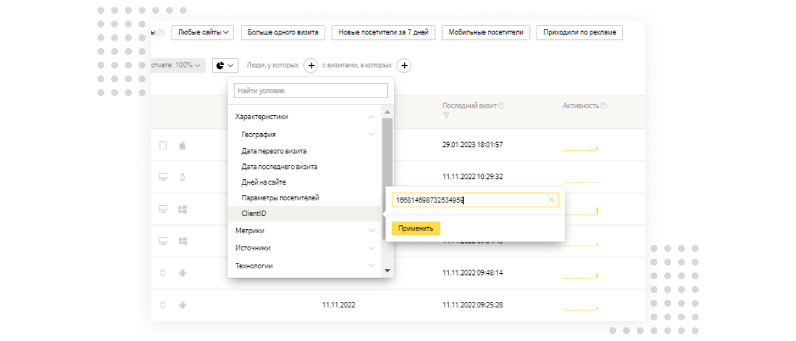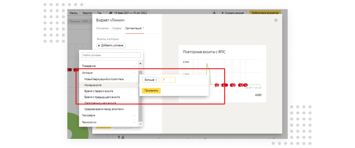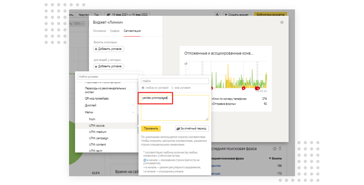 Поэтому нам здесь нужно отслеживать количество повторных визитов при первом источнике Яндекс ПромоСтраницы.