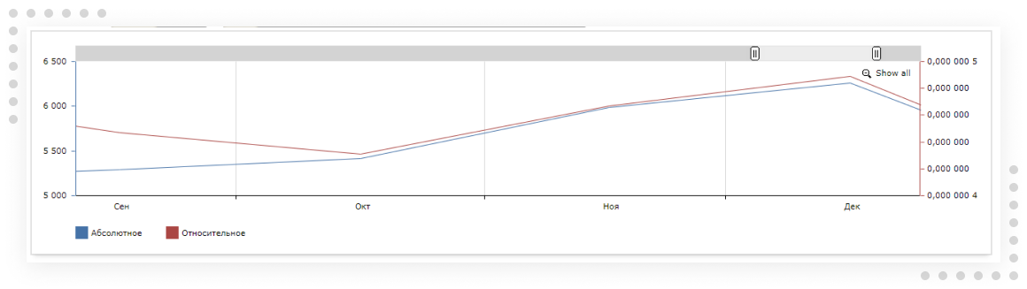 Пример из реального проекта, несезонный медицинский бизнес. Запуск состоялся в октябре, количество запросов увеличилось