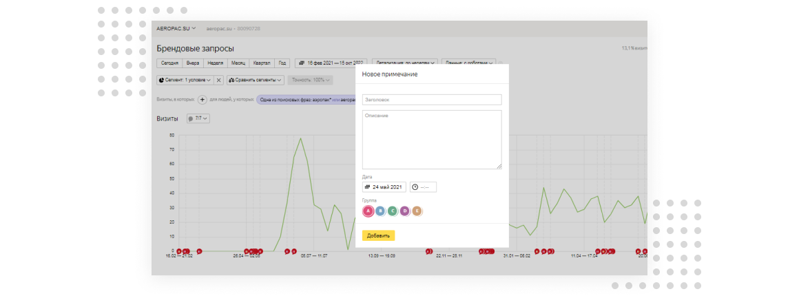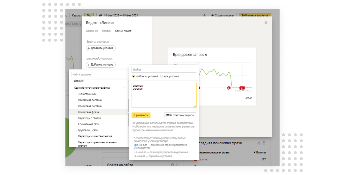 Второй способ. В Яндекс. Метрике мы также можем задать виджет по брендовым запросам. Рассказываю, как это сделать: