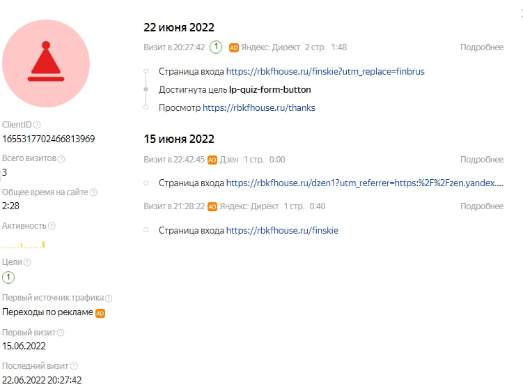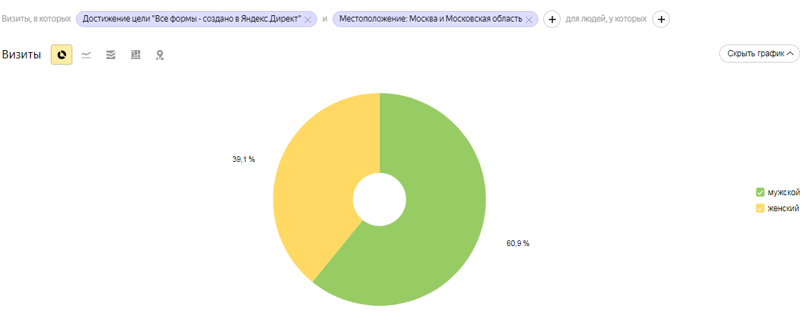 Скриншот из Яндекс Метрики — достижения целей на сайте клиента. Так мы узнали, какие именно посетители дают конверсии