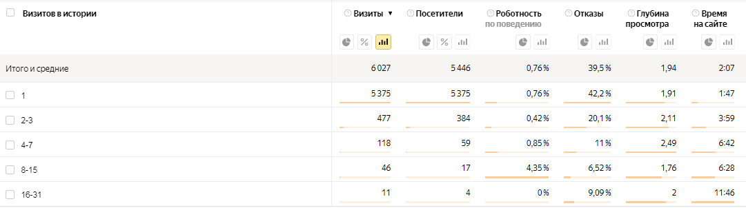 Срез по поведению посетителей с Яндекс ПромоСтраниц. Важную роль играет возвращение читателя на сайт после контакта со статьей